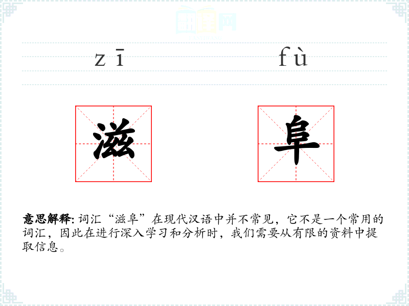 词汇“滋阜”在现代汉语中并不常见,它不是一个常用的词汇,因此在进行深入学习和分析时,我们需要从有限的资料中提取信息。
