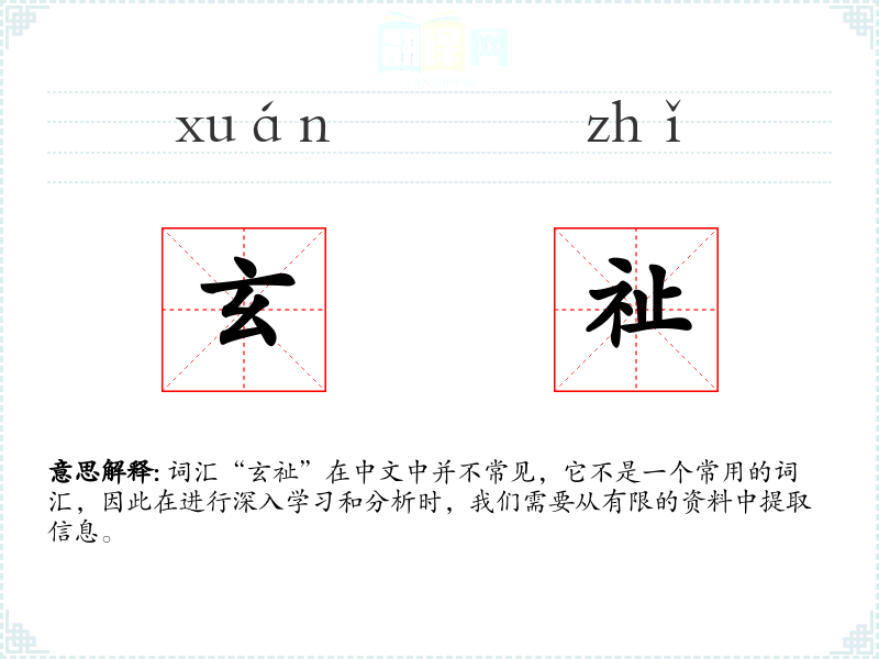 词汇“玄祉”在中文中并不常见,它不是一个常用的词汇,因此在进行深入学*和分析时,我们需要从有限的资料中提取信息。