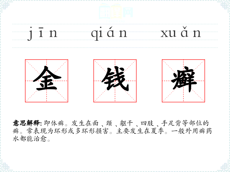 金钱癣的分字解释