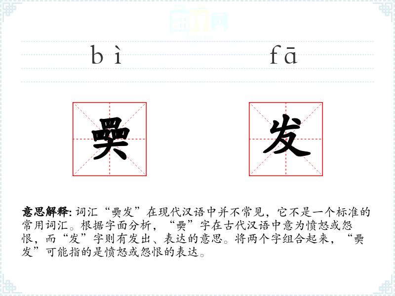 词汇“奰发”在现代汉语中并不常见,它不是一个标准的常用词汇。根据字面分析,“奰”字在古代汉语中意为愤怒或怨恨,而“发”字则有发出、表达的意思。将两个字组合起来,“奰发”可能指的是愤怒或怨恨的表达。