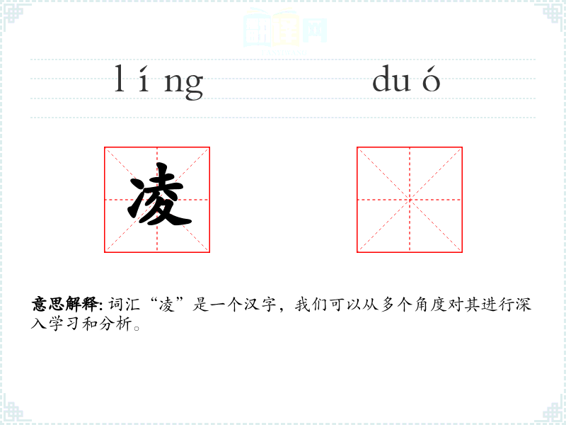 词汇“凌”是一个汉字,我们可以从多个角度对其进行深入学*和分析。