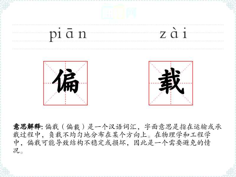 偏载一词由“偏”和“载”两个字组成。“偏”字有偏向、不正的意思,“载”字则指承载、装载。在古代汉语中,这两个字组合起来描述的是负载不均匀的情况,现代汉语中沿用了这一含义。