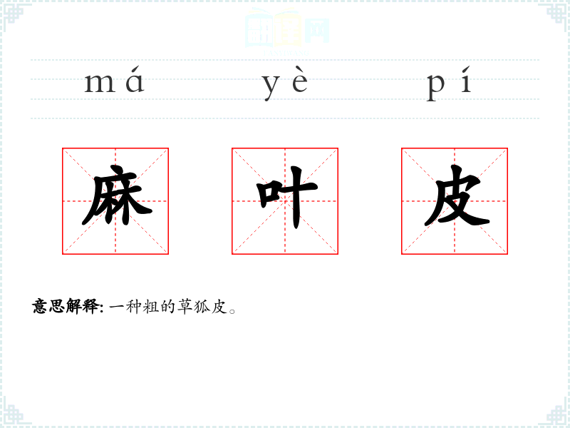 麻叶皮的分字解释