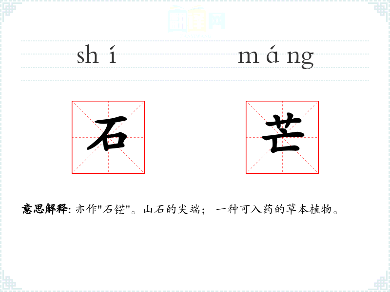 亦作"石铓"。山石的尖端; 一种可入药的草本植物。