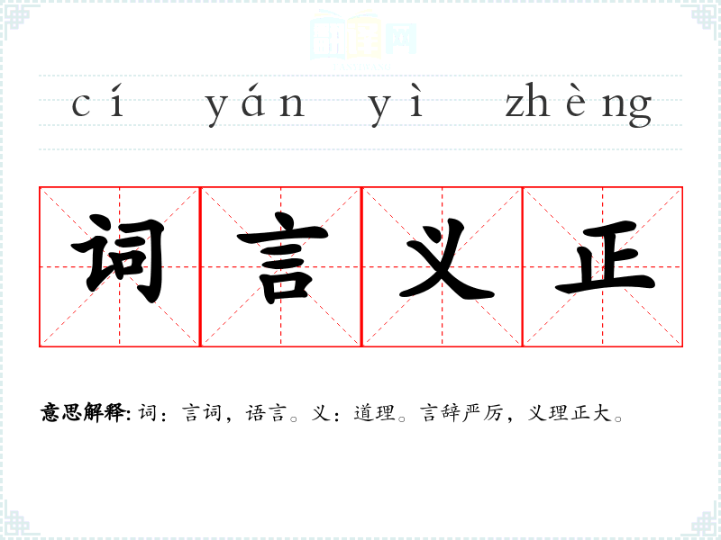 词:言词,语言。义:道理。言辞严厉,义理正大。