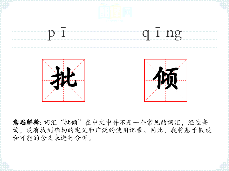 词汇“批倾”在中文中并不是一个常见的词汇,经过查询,没有找到确切的定义和广泛的使用记录。因此,我将基于假设和可能的含义来进行分析。