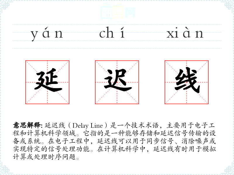 “延迟线”一词源自英语“delay line”,在20世纪中叶随着电子技术的发展而出现。最初用于描述物理设备,后来扩展到计算机科学领域。