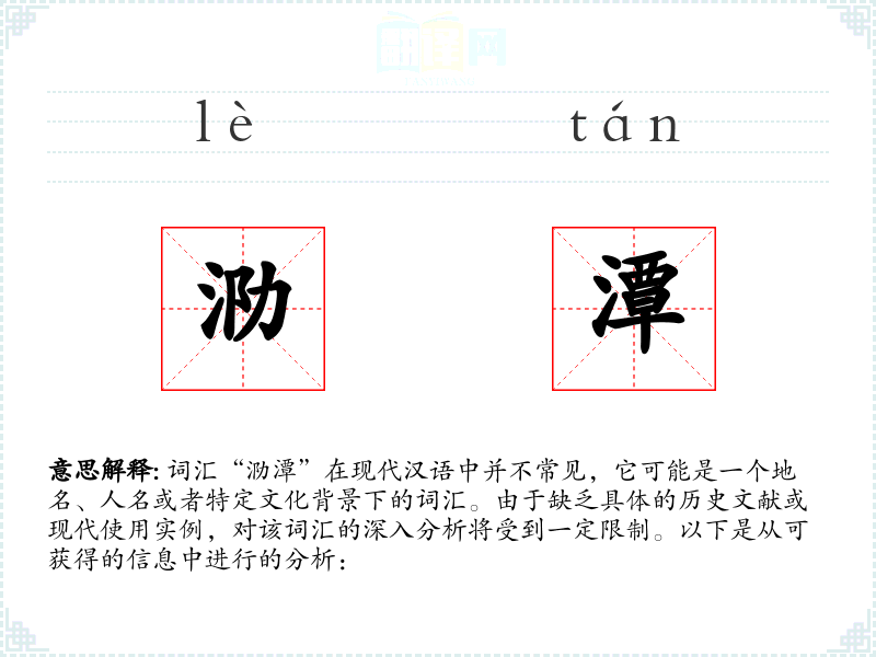 “泐”字在古代文献中有时指石头或矿物,“潭”字则一直指深水池或湖泊。这两个字的组合可能在某个特定的历史时期或地区被用来命名某个地方。