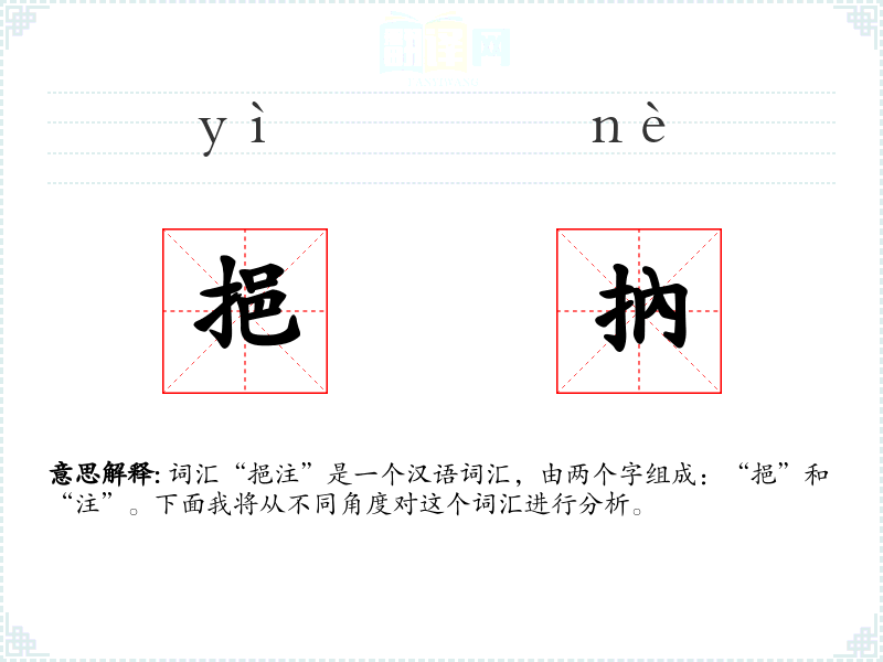 词汇“挹注”是一个汉语词汇,由两个字组成:“挹”和“注”。下面我将从不同角度对这个词汇进行分析。