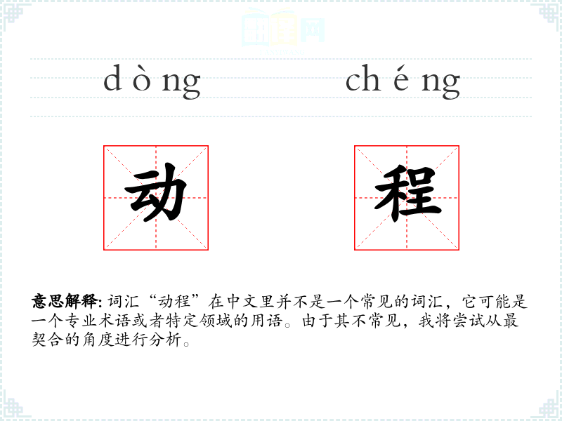 词汇“动程”在中文里并不是一个常见的词汇,它可能是一个专业术语或者特定领域的用语。由于其不常见,我将尝试从最契合的角度进行分析。