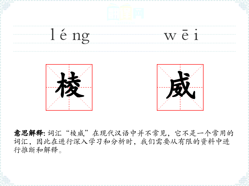 词汇“棱威”在现代汉语中并不常见,它不是一个常用的词汇,因此在进行深入学习和分析时,我们需要从有限的资料中进行推断和解释。