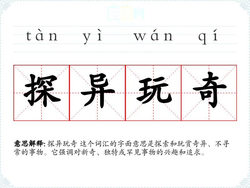 探异玩奇 这个词汇在我语言学习和表达中具有重要意义。它不仅丰富了我的词汇量,还激发了我对未知世界的好奇心和探索欲。通过学习和使用这个词汇,我更加深刻地理解了探索精神的重要性,并将其应用到我的生活和创作中。