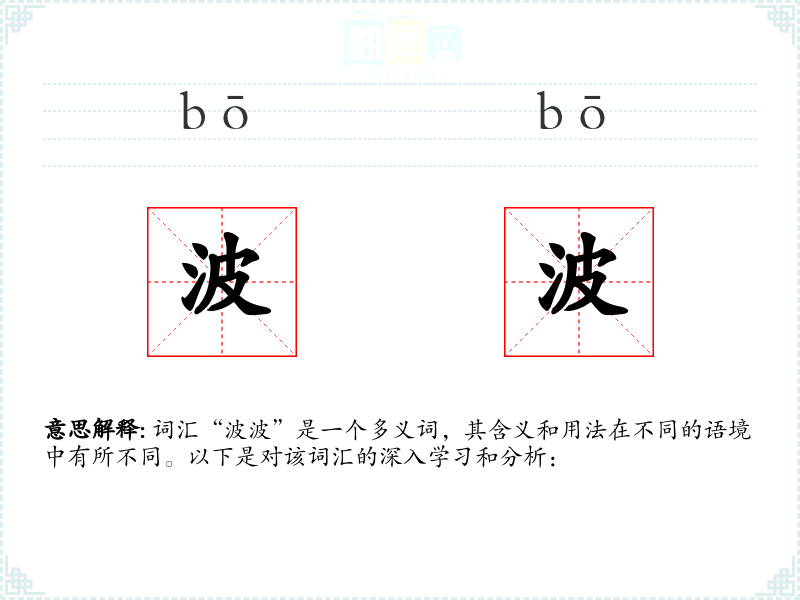- 理解:通过对“波波”的深入学习,我更加理解了这个词汇的多义性和灵活性,以及它在不同语境中的应用。