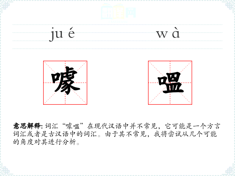 词汇“噱嗢”在现代汉语中并不常见,它可能是一个方言词汇或者是古汉语中的词汇。由于其不常见,我将尝试从几个可能的角度对其进行分析。