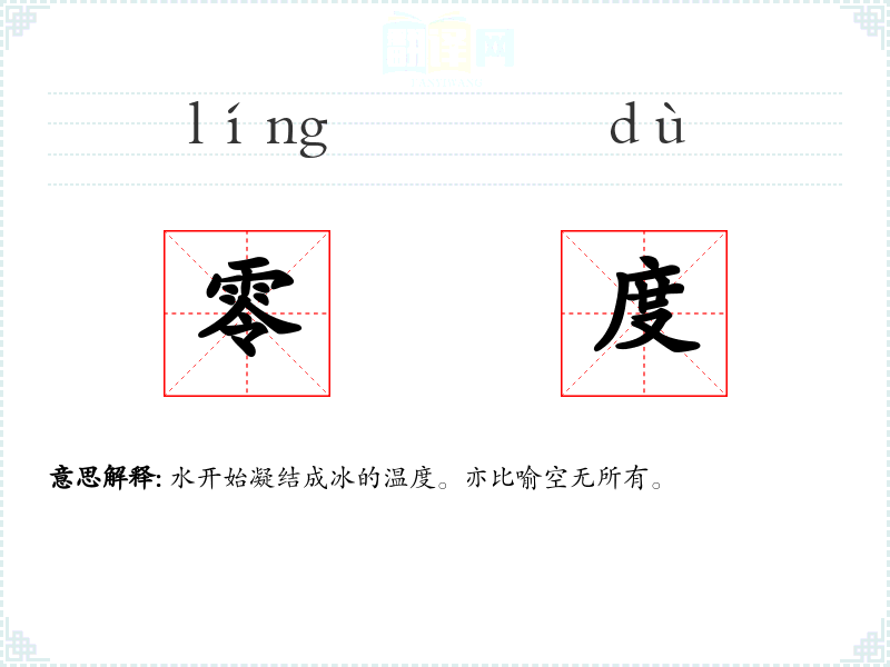 水开始凝结成冰的温度。亦比喻空无所有。
