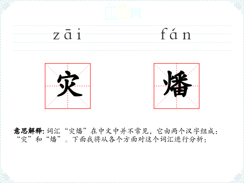 词汇“灾燔”在中文中并不常见,它由两个汉字组成:“灾”和“燔”。下面我将从各个方面对这个词汇进行分析: