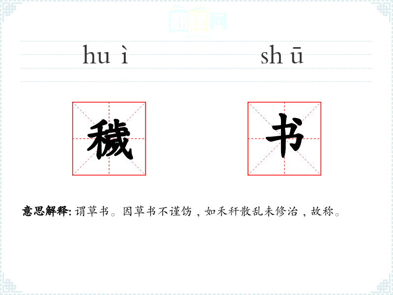 谓草书。因草书不谨饬﹐如禾秆散乱未修治﹐故称。