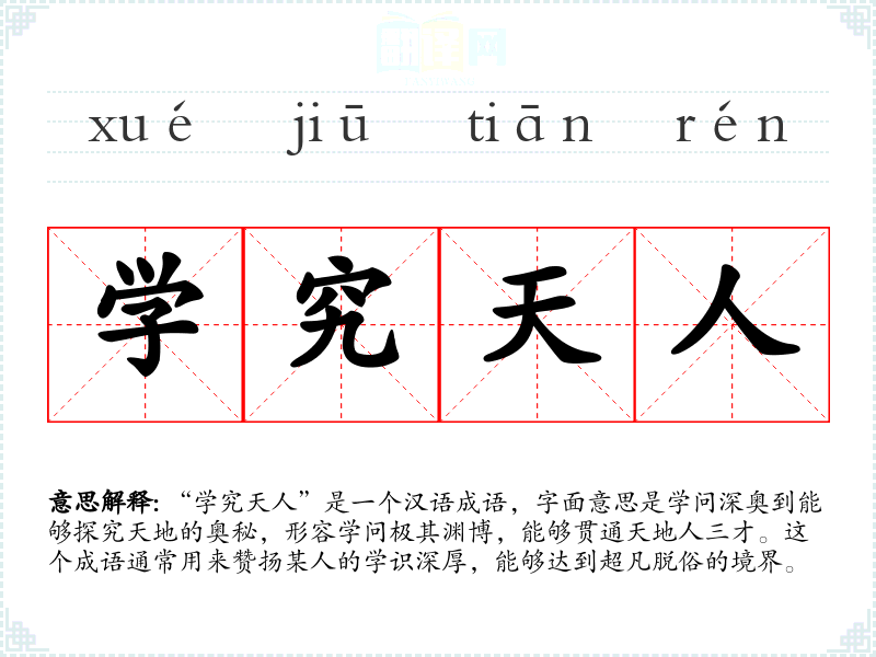 “学究天人”是一个汉语成语,字面意思是学问深奥到能够探究天地的奥秘,形容学问极其渊博,能够贯通天地人三才。这个成语通常用来赞扬某人的学识深厚,能够达到超凡脱俗的境界。