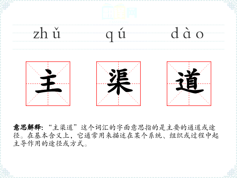 “主渠道”这个词汇在中文中直接表达了其含义,没有复杂的词源或历史演变。它是一个相对现代的词汇,随着社会和科技的发展,其使用频率和范围逐渐扩大。