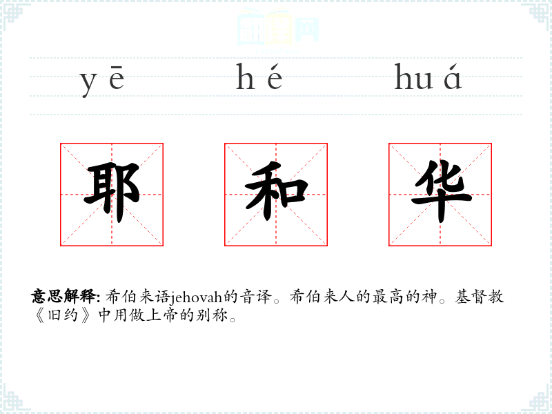 希伯来语jehovah的音译。希伯来人的最高的神。基督教《旧约》中用做上帝的别称。