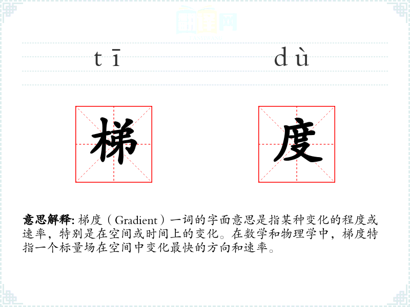 在不同语言中,梯度的概念通常都有对应的词汇,如英语中的“gradient”、法语中的“gradient”等,尽管具体用法可能有所不同,但核心概念是相通的。
