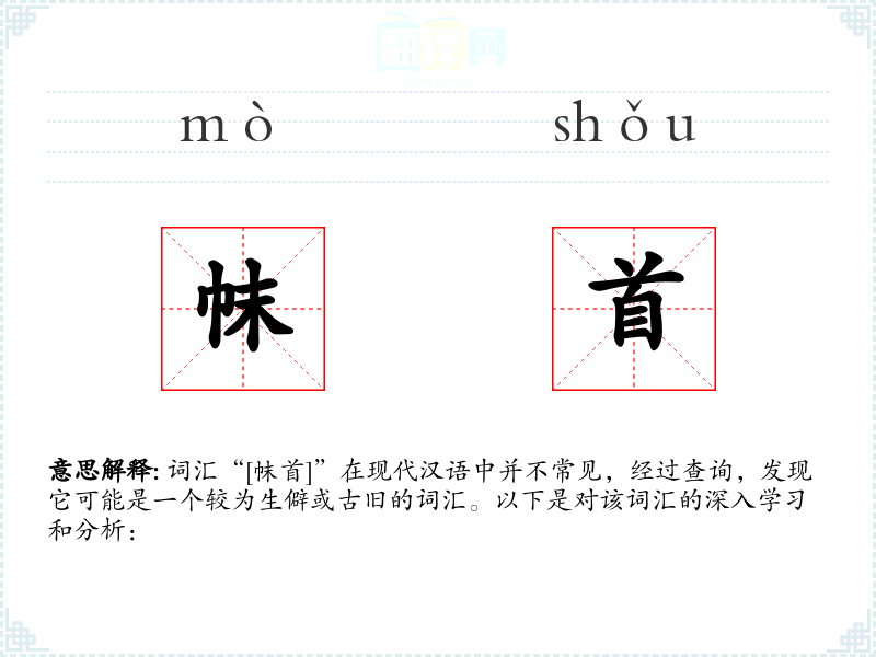 词汇“[帓首]”在现代汉语中并不常见,经过查询,发现它可能是一个较为生僻或古旧的词汇。以下是对该词汇的深入学习和分析: