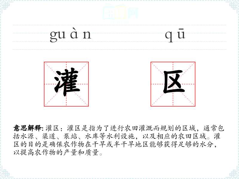 - 专业领域:在农业水利工程领域,灌区是一个核心概念,涉及到水资源的分配和管理。