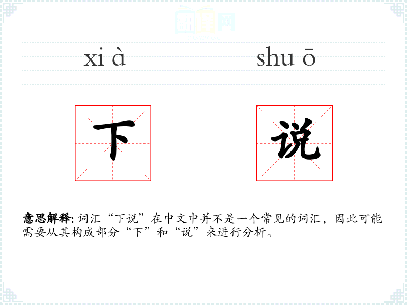 词汇“下说”在中文中并不是一个常见的词汇,因此可能需要从其构成部分“下”和“说”来进行分析。