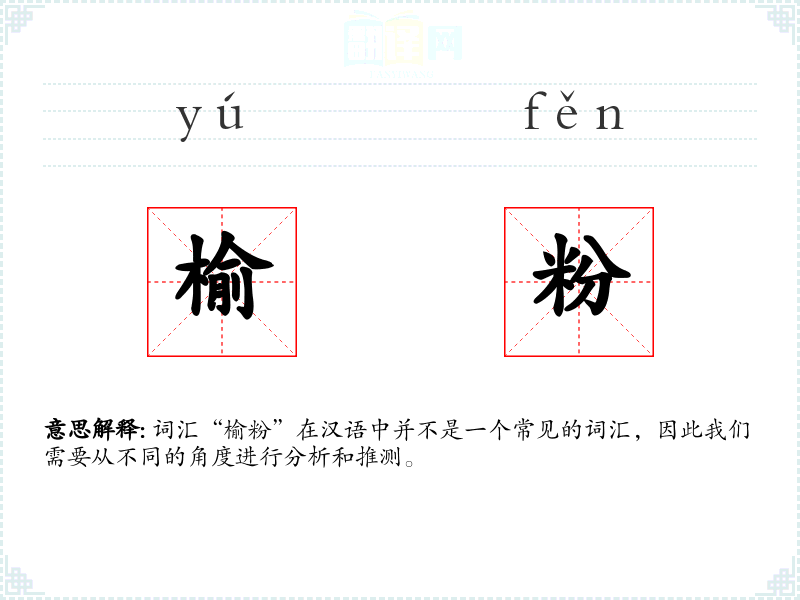 词汇“榆粉”在汉语中并不是一个常见的词汇,因此我们需要从不同的角度进行分析和推测。