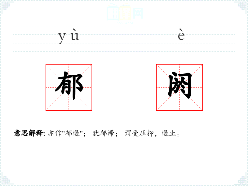 亦作"郁遏"; 犹郁滞; 谓受压抑,遏止。