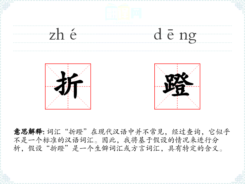 词汇“折蹬”在现代汉语中并不常见,经过查询,它似乎不是一个标准的汉语词汇。因此,我将基于假设的情况来进行分析,假设“折蹬”是一个生僻词汇或方言词汇,具有特定的含义。