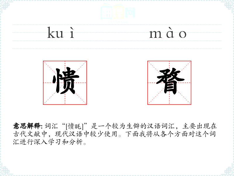 词汇“[愦眊]”是一个较为生僻的汉语词汇,主要出现在古代文献中,现代汉语中较少使用。下面我将从各个方面对这个词汇进行深入学*和分析。