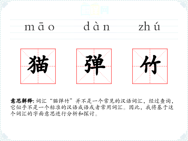 词汇“猫弹竹”并不是一个常见的汉语词汇,经过查询,它似乎不是一个标准的汉语成语或者常用词汇。因此,我将基于这个词汇的字面意思进行分析和探讨。