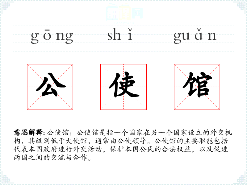 公使馆作为一个词汇,不仅代表了外交机构的具体职能,也反映了国际关系的复杂性和多样性。在语言学*和表达中,了解和运用这一词汇有助于深化对国际政治和外交实践的理解。