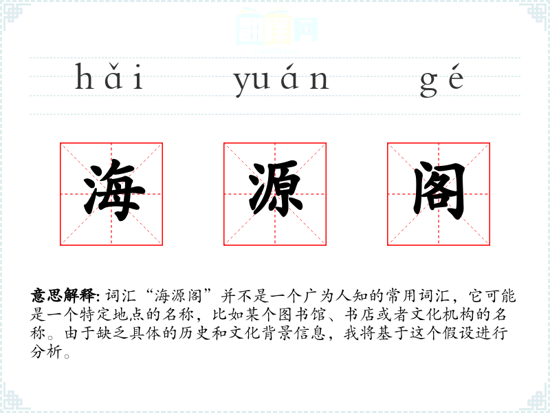 “海源阁”作为一个特定地点的名称,可能在特定的文化和社会背景中具有重要意义。对于语言学习者来说,了解这样的特定词汇可以帮助他们更好地理解当地文化和历史。