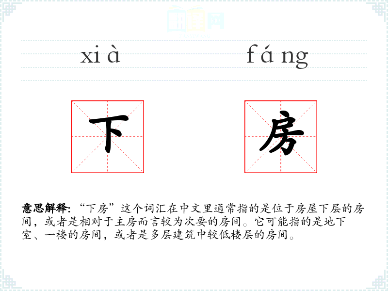 "下房"的意思解释、下房是什么意思由翻译网汉语词典查词提供。