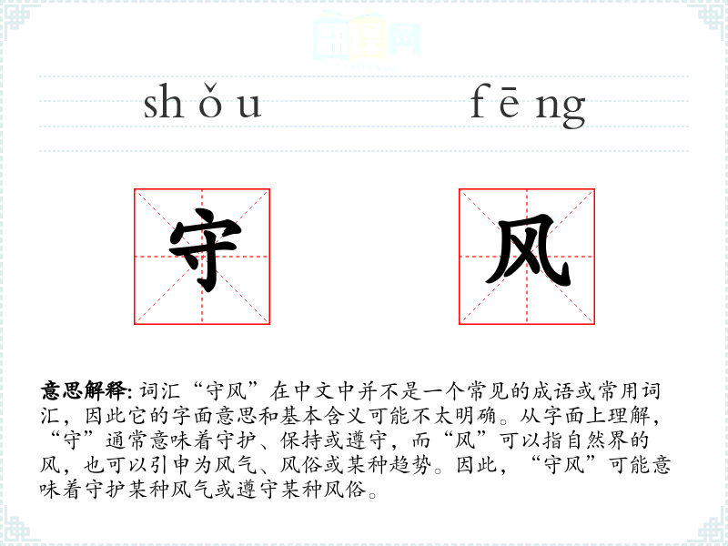 "守风"的意思解释、守风是什么意思由翻译网汉语词典查词提供。