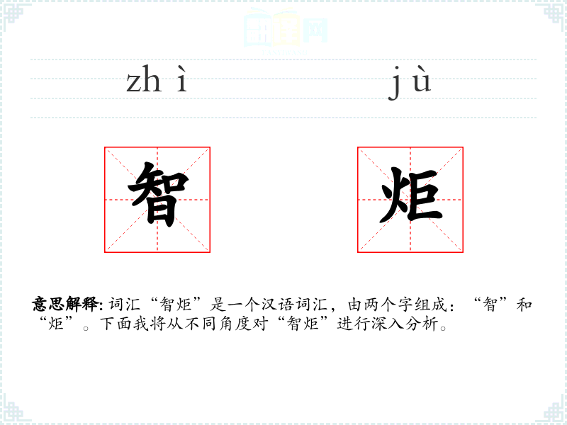 - 词源:“智”和“炬”都是古代汉语词汇,历史悠久。