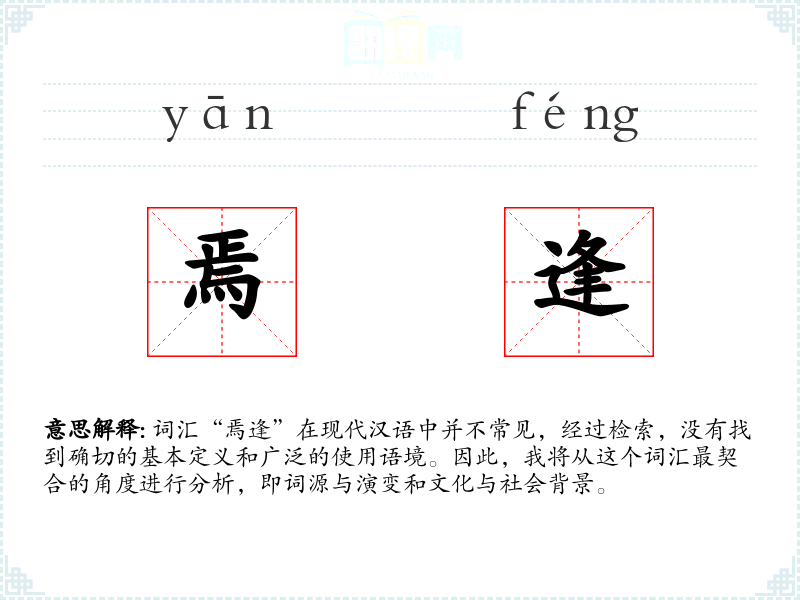 词汇“焉逢”在现代汉语中并不常见,经过检索,没有找到确切的基本定义和广泛的使用语境。因此,我将从这个词汇最契合的角度进行分析,即词源与演变和文化与社会背景。
