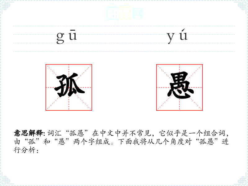 词汇“孤愚”在中文中并不常见,它似乎是一个组合词,由“孤”和“愚”两个字组成。下面我将从几个角度对“孤愚”进行分析: