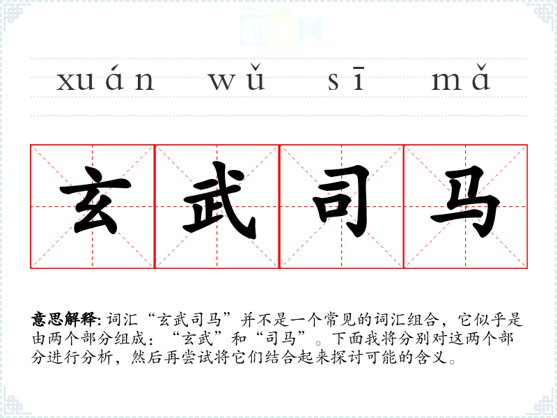 词汇“玄武司马”并不是一个常见的词汇组合,它似乎是由两个部分组成:“玄武”和“司马”。下面我将分别对这两个部分进行分析,然后再尝试将它们结合起来探讨可能的含义。