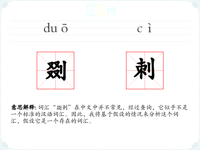 词汇“剟刺”在中文中并不常见,经过查询,它似乎不是一个标准的汉语词汇。因此,我将基于假设的情况来分析这个词汇,假设它是一个存在的词汇。