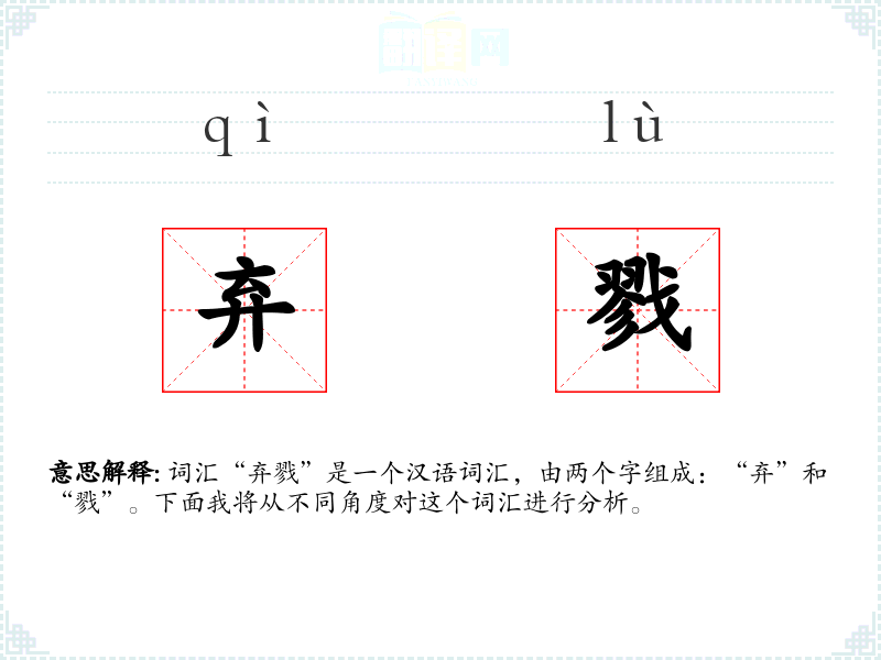 - 词源:这两个字都是古代汉语中的常用字,“弃”字最早见于甲骨文,“戮”字则较晚出现。