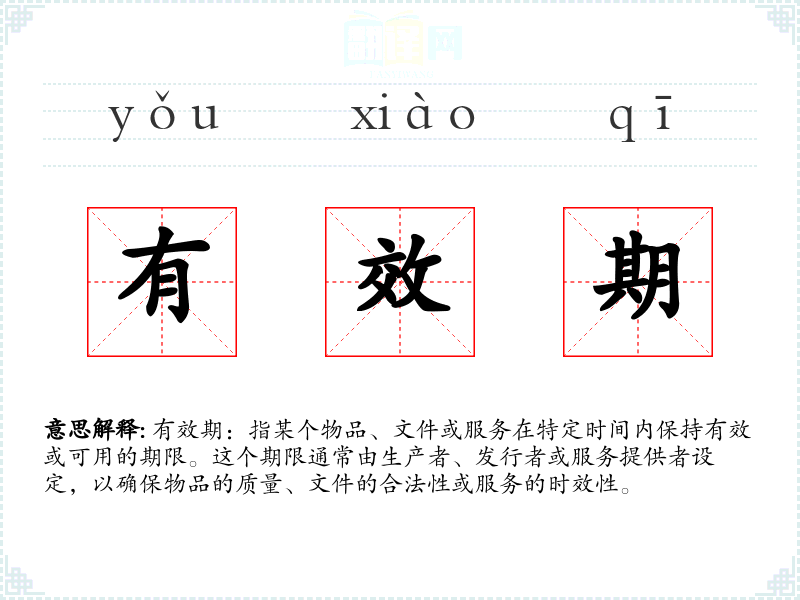 有效期是一个在现代生活中不可或缺的概念,它不仅帮助我们管理时间和资源,还提醒我们珍惜和利用好每一刻。在学习语言和表达中,理解和正确使用有效期这一词汇,对于提高沟通的准确性和效率至关重要。