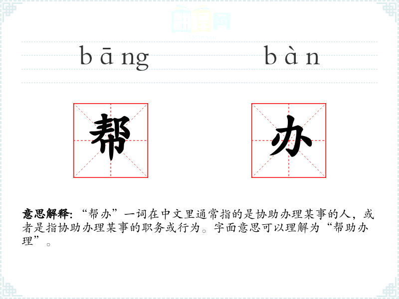 “帮办”一词的词源较为直接,由“帮”(帮助)和“办”(办理)两个字组合而成。在历史上,这个词的使用并不广泛,但随着现代社会分工的细化,其使用频率逐渐增加。