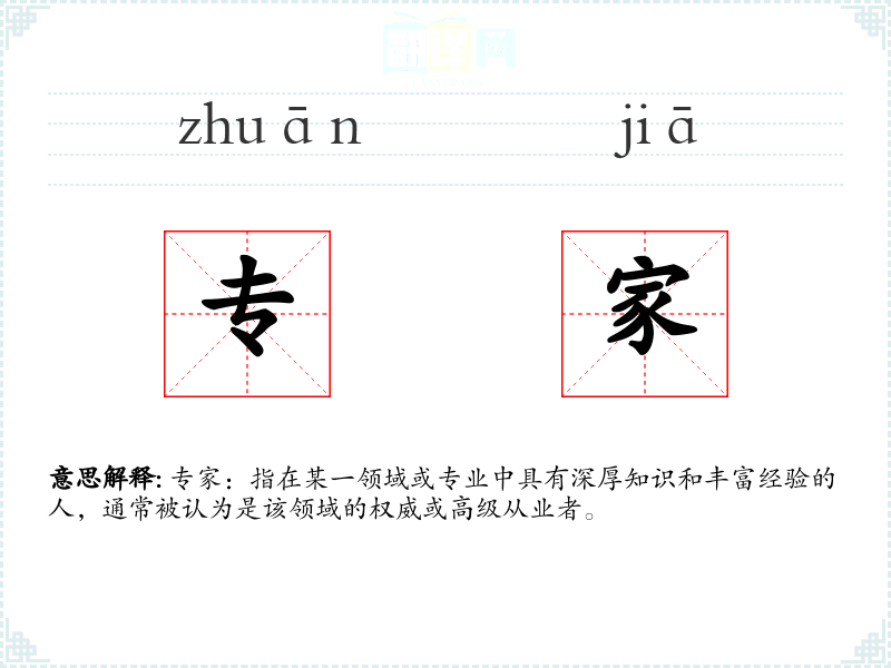 专家:指在某一领域或专业中具有深厚知识和丰富经验的人,通常被认为是该领域的权威或高级从业者。