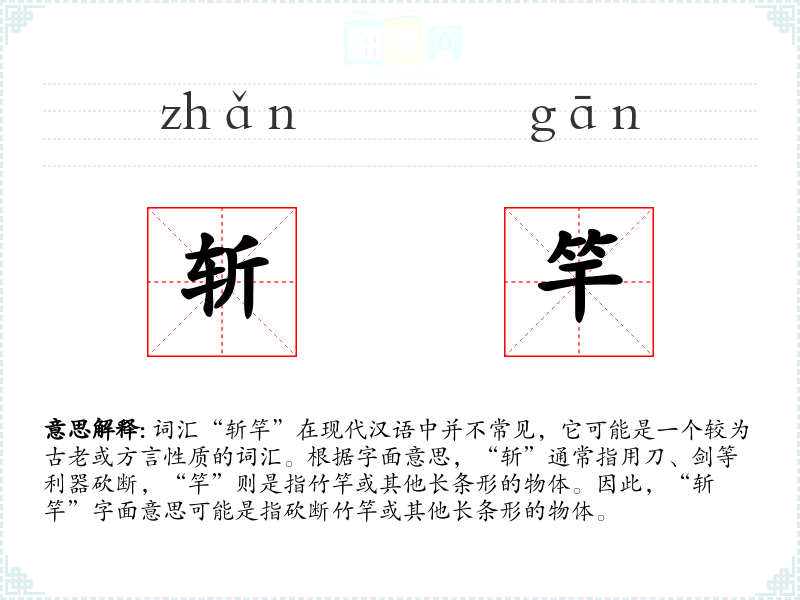 - 理解:“斩竿”是一个具有特定历史和文化背景的词汇,虽然在现代汉语中不常见,但在某些语境中仍具有独特的意义。