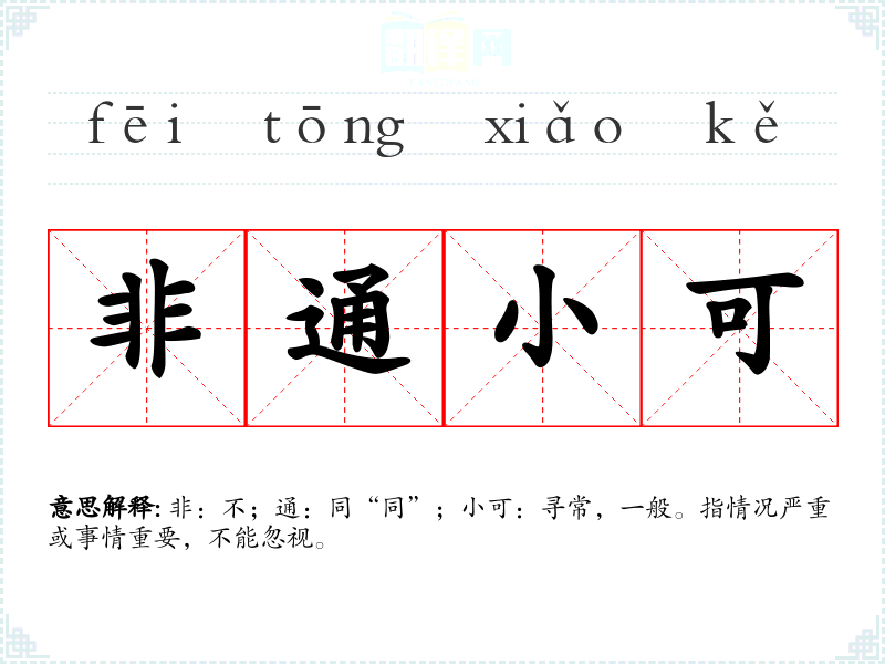 非:不;通:同“同”;小可:寻常,一般。指情况严重或事情重要,不能忽视。
