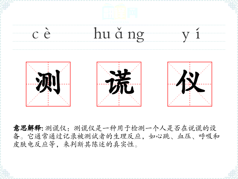"测谎仪"的意思解释、测谎仪是什么意思由翻译网汉语词典查词提供。