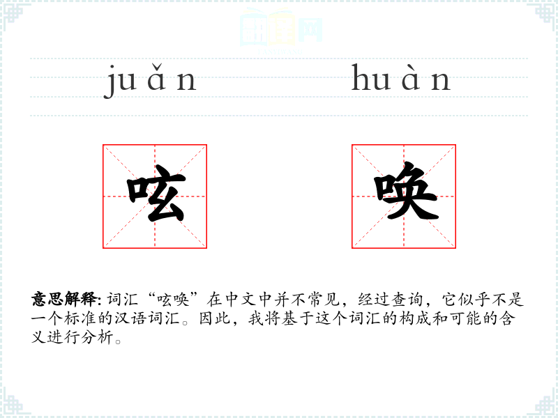 词汇“呟唤”在中文中并不常见,经过查询,它似乎不是一个标准的汉语词汇。因此,我将基于这个词汇的构成和可能的含义进行分析。